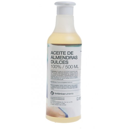 El aceite de almendras dulces se extrae por presión en frío de las semillas troceadas de Amygdalus communis L, que tiene su origen en las regiones de Asia central, donde es cultivado hace miles de años. España se ha convertido en la actualidad en uno de los países productores de almendro más importantes del planeta. Hay que destacar que es la variedad de almendras dulces la que presenta los mayores beneficios para el organismo sin ninguna toxicidad. El aceite de almendras dulces es un aceite vegetal rico en vitaminas A, B y E, proteínas y sales minerales. Además, contiene como antioxidante natural el tocoferol, siendo portador de ácidos grasos esenciales. Su uso está indicado para todo tipo de pieles, especialmente aquellas irritadas, inflamadas, alérgicas o muy secas, ya que posee una excelente capacidad lubricante y protectora de la piel. Es también estimulante en la producción de colágeno y elastina, siendo por tanto un excelente regenerador celular. Su composición en triglicéridos garantiza la renovación de la fase grasa del manto hidrolipídico de la piel en todo tipo de cutis, principalmente en los preseniles y aquellos que, por su larga exposición a agentes atmosféricos agresivos, presentan deterioros prematuros. Es un aceite de especial interés en formulaciones antiestrías, de manos agrietadas y de uso en pieles muy jóvenes o infantiles. Además, se puede aplicar sobre el cabello seco, especialmente aquellos más castigados y quebradizos, proporcionándole suavidad y brillo. También, este combinado con otros aceites y distintas esencias es muy utilizado en masajes corporales, tanto relajantes como complementarios a tratamientos fisioterapéuticos específicos.