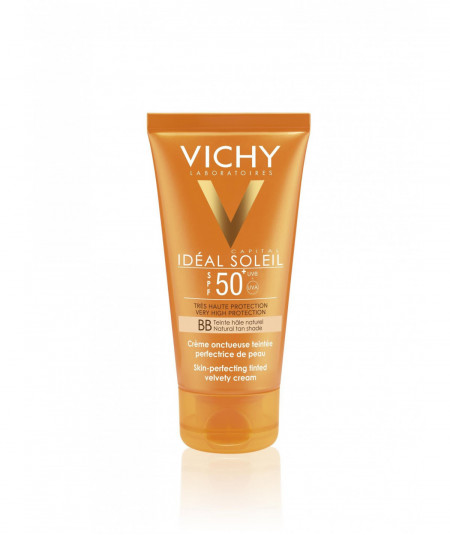 La BB Cream Emulsión Tacto Seco aporta alta protección con color para mujeres con pieles mixtas a grasas que buscan una protección solar facial con color y que realce la tez al momento. Puede aplicarse diariamente para obtener un bronceado saludable y luminoso de manera inmediata. Protege frente a rayos UVB/UVA e incluso frente a rayos UVA largos gracias al sistema filtrante de amplio espectro que contiene. Deja un tono bronceado al momento sobre la piel gracias al color universal BB, así como una piel uniforme y resplandeciente debido a los pigmentos de alta cobertura que tiene su formulación. Gracias al uso de la BB Cream de Vichy, la piel está eficazmente protegida y reluciente cada día.